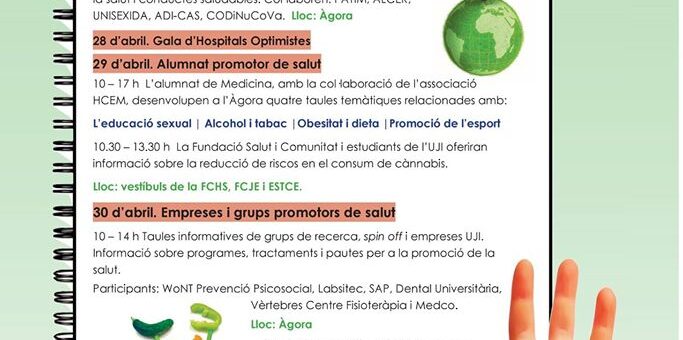 La última semana de Abril, Vèrtebres participará en la semana saludable de la UJI dando consejos y recomendaciones a los visitantes.